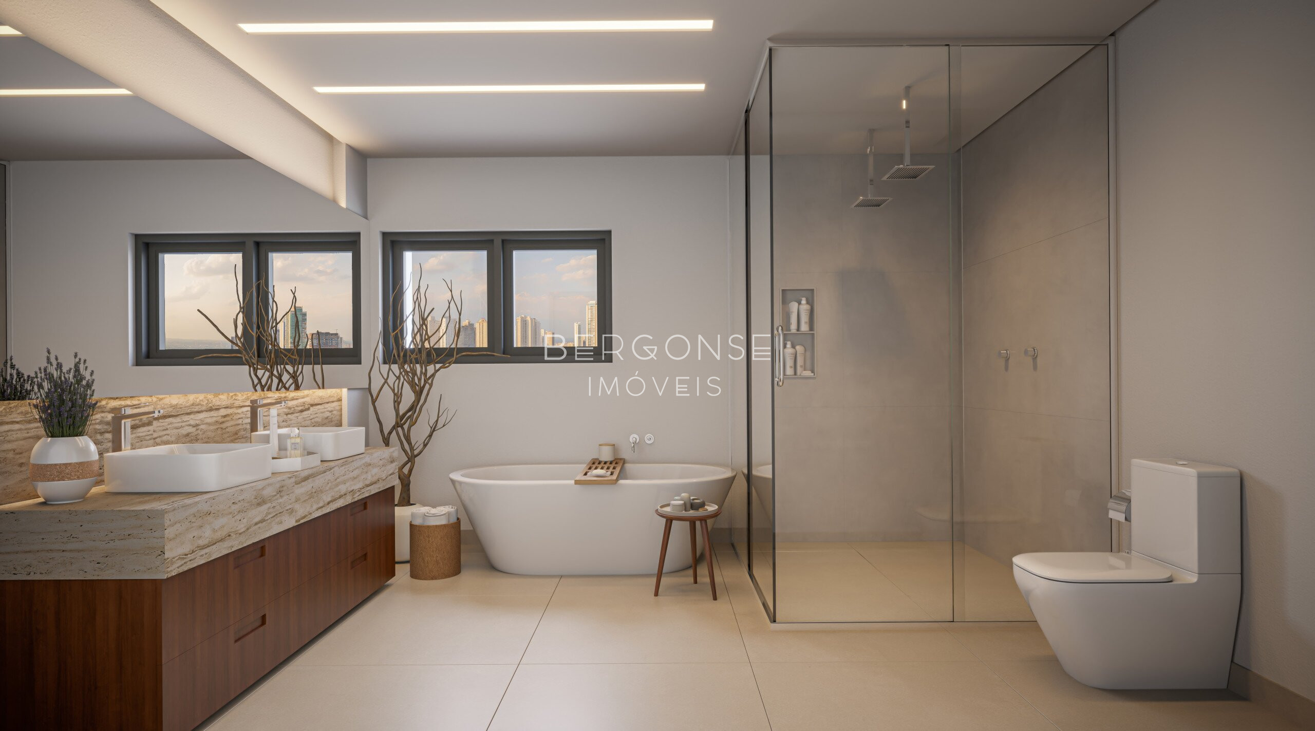 Conforto Absoluto: Piso aquecido nos banheiros das suítes, persianas integradas motorizadas e o mais avançado sistema de tratamento acústico em paredes, lajes e tubulações;