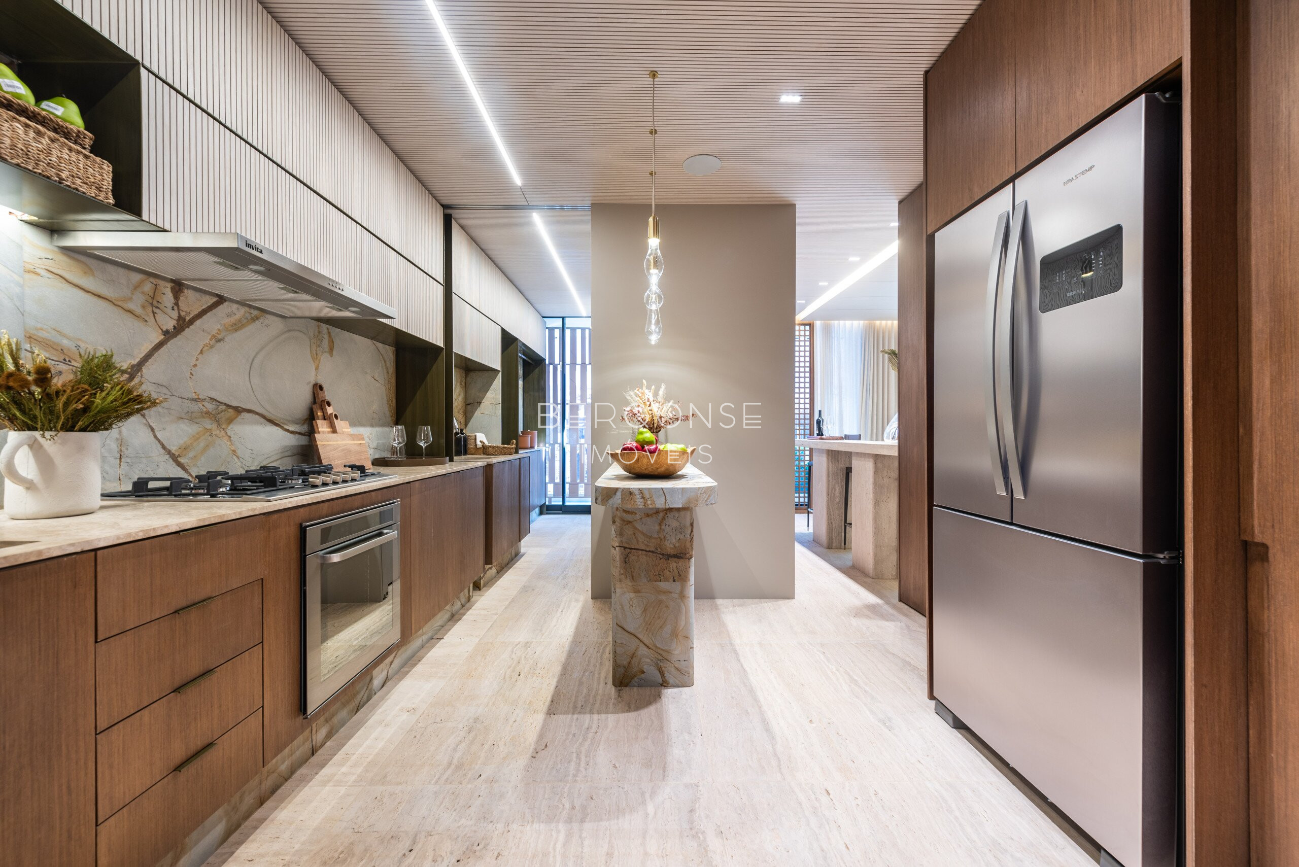 Recepção Imponente: Um lobby monumental com 210 m², pé-direito de 7,5 metros e um conceito de design assinado pela Artefacto.