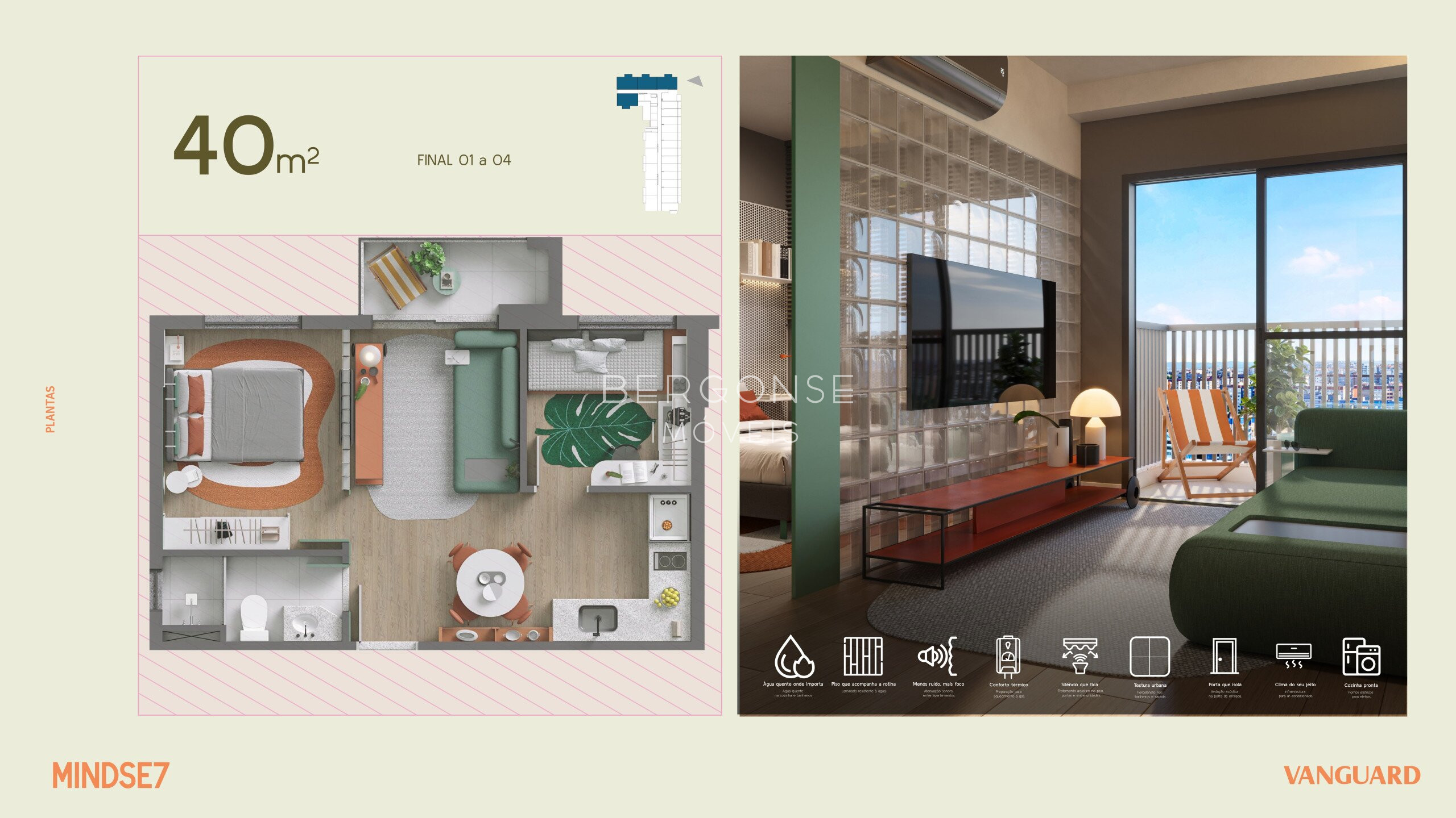 MINDSE7 by Vanguard: Conforto e Espaço no Apartamento de 2 Dormitórios (40m²) na Av. Sete de Setembro